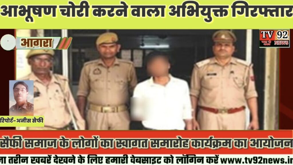Agra : दो घरों में भैंस चोरी करने के प्रकरण में संलिप्त अभियुक्त को थाना सदर बाजार पुलिस टीम द्वारा किया गया गिरफ्तार….Tv92news