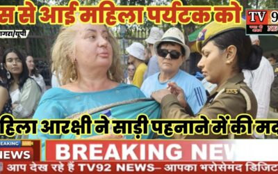 आगरा रूस से आई महिला पर्यटक को महिला आरक्षी ने साड़ी पहनाने में की मदद Tv92News