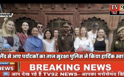 Agra : Tv92News:इंग्लैंड से आए पर्यटकों का ताज सुरक्षा पुलिस ने किया हार्दिक स्वागत