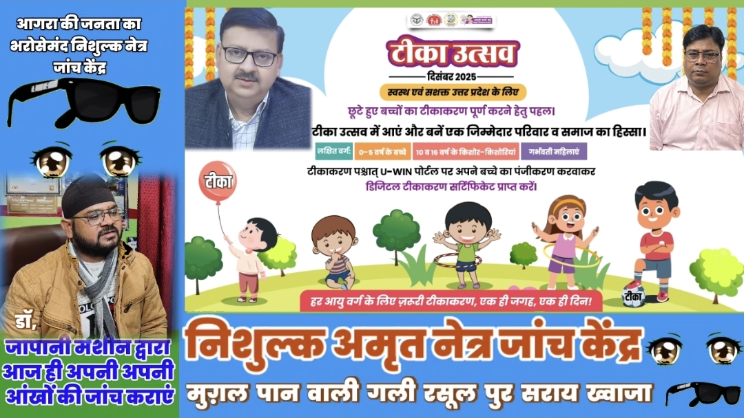टीका उत्सव में आएं और जानलेवा बीमारियों से बचाव को टीका लगवाएं – टीकाकरण जानलेवा बीमारियों से बचाव की कुंजी- सीएमओ – जनपद में 01 से 31 दिसंबर तक मनाया जाएगा टीका उत्सव – छूटे हुए बच्चों को टीका लगवाने के लिए किया जाएगा प्रेरित आगरा, 29 नवंबर 2025। स्वास्थ्य विभाग द्वारा दिसंबर माह में…