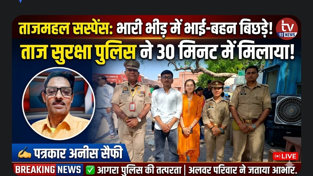 ताजमहल में रविवार को भारी भीड़ के बीच भाई-बहन बिछड़ गए। अलवर से आए पर्यटक हर्ष पवार अपनी बहन से अलग हो गए, जिससे मौके पर हड़कंप मच गया। घटना की सूचना मिलते ही ताज सुरक्षा पुलिस तुरंत एक्शन में आई। उप निरीक्षक शिवराज सिंह के नेतृत्व में टीम ने CCTV फुटेज, रेडियो अनाउंसमेंट और…