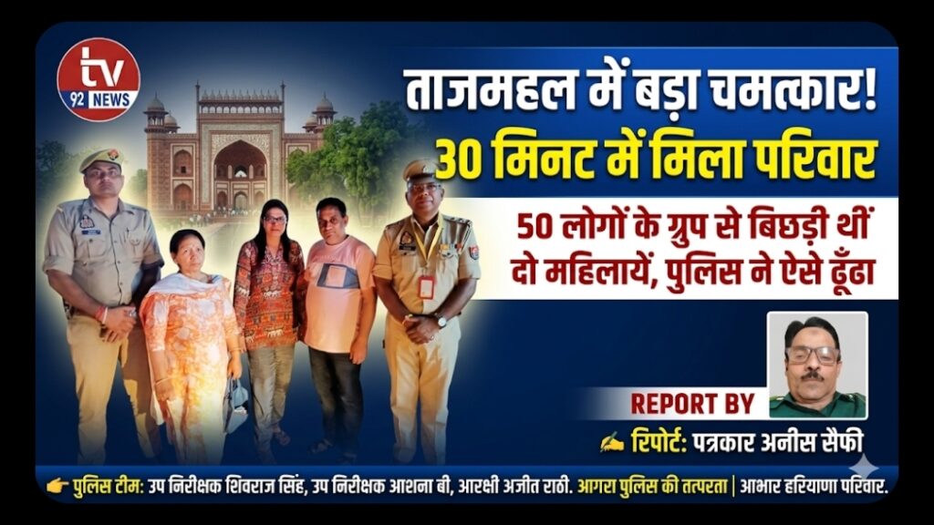 ताजमहल में बिछड़ी दो महिला पर्यटक, ताज सुरक्षा पुलिस ने 30 मिनट में मिलाया 📅 12 अप्रैल 2026 | आगरा ताजमहल घूमने आईं हरियाणा के सिरसा से 50 सदस्यों की एक पर्यटक टीम के साथ एक छोटी सी घटना घटी, जिसे ताज सुरक्षा पुलिस ने तत्परता से संभाल लिया। ताजमहल का भ्रमण करने के बाद…
