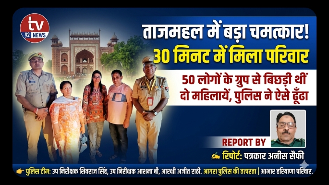 ताजमहल में बिछड़ी 60 वर्षीय महिला को ताज सुरक्षा पुलिस ने मिलाया परिवार से, सराहनीय कार्य Tv92News