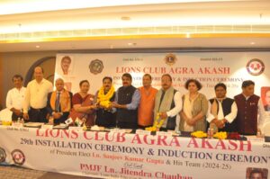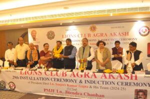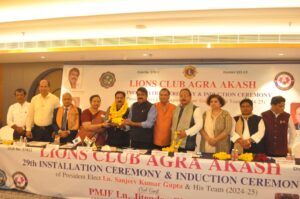 आगरा। 29 वें अधिष्ठापन समारोह में गौसेवा, नारायण सेवा को ध्येय वाक्य मानते हुए सेवा के पथ पर चलने का संकल्प लिया लॉयंस क्लब आगरा आकाश ने।