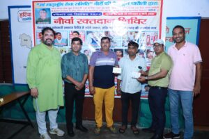 रेड क्रॉस सोसाइटी, झज्जर से दीपक कुमार की टीम मोजूद रही । धारौली के दंपति श्री धर्मेंद्र लांबा ने 11वीं बार और उनकी धर्मपत्नी श्रीमती शर्मिला लांबा ने तीसरी बार रक्तदान किया I जिला झज्जर के अंबोली गांव की मनीषा देवी और रेवाड़ी के सुधराना गांव की लक्ष्मी सिंह ने रक्तदान किया ।
