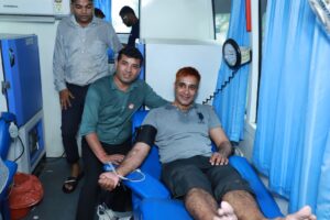 रक्तदान शिविर का शुभारंभ मुख्य अतिथि धारौली के दंपति श्री धर्मेंद्र लांबा ने 11वीं बार और उनकी धर्मपत्नी श्रीमती शर्मिला लांबा ने तीसरी बार रक्तदान करके किया।