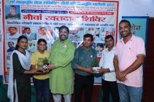 शहीद के सम्मान में आयोजित रक्तदान शिविर में तीन महिलाएं सहित 97 युवाओं ने किया रक्तदान