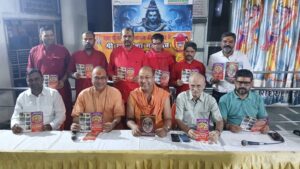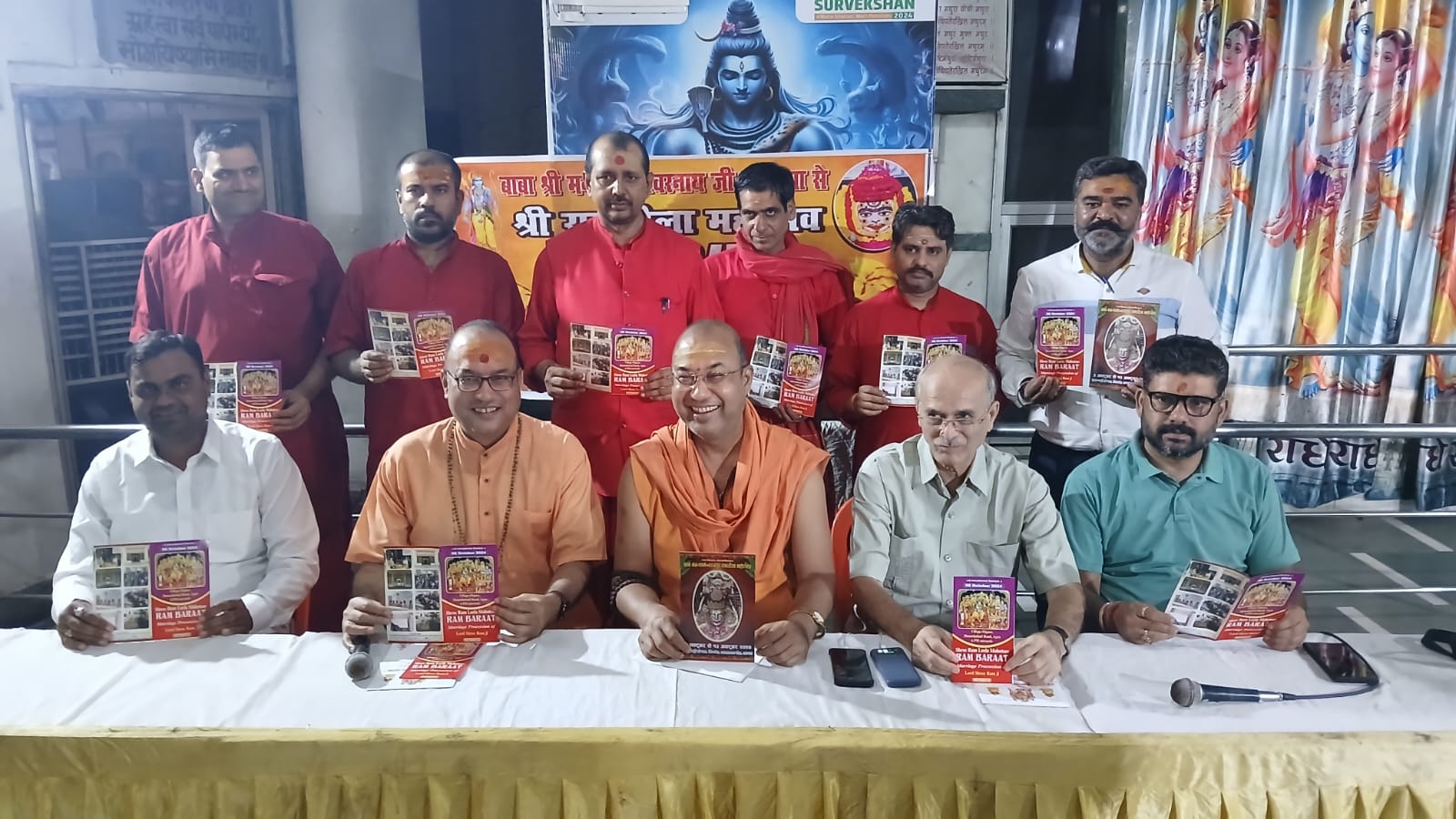 फोटो, कैप्शन− श्रीमनःकामेश्वर नाथ राम लीला महोत्सव के आमंत्रण पत्र का विमोचन करते महंत याेगेश पुरी, हरिहर पुरी आदि।