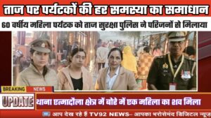 Agra: ताज का दीदार करने आई बहराइच की 60 वर्षीय महिला पर्यटक को ताज सुरक्षा पुलिस ने परिजनों से मिलाया Tv92News