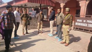 पुलिस टीम में,प्रभारी निरीक्षक तिलक राम भाटी,उप निरीक्षक शिवराज सिंह,उप निरीक्षक सतीश चंद्र ,उप निरीक्षक ओमवीर सिंह ,उप निरीक्षक पंकज सिंह पटेल ,महिला उप निरीक्षक आशना ,आरक्षी दुर्गेश कुमार ,आरक्षी शैलेंद्र कुमार, महिला आरक्षी प्रीति ,सहित पीएसी बल के साथ थाना ताज सुरक्षा पुलिस टीम पश्चिमी गेट पर मोर्चा संभाले रहे।