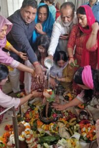 मंदिर परिसर पर पंचवटी परिवार 580 परिवार द्वारा महाशिवरात्रि के पावन शुभ अवसर पर दुग्ध अभिषेक कर भोले बाबा की आराधना पूजा अर्चना पंडित गिरीश उपाध्याय द्वारा कर पंचवटी परिवार ने आनंद की प्राप्ति की भगवान शिव की आराधना से प्राप्त होते हैं सब सुख कॉलोनी में पंक्तिबद्ध होकर हर किसी ने पूजा अर्चना कर शिव आरती पाठ कर भोले बाबा से सभी के लिए मंगल कामना की संरक्षक श्याम भोजवानी ने बताया