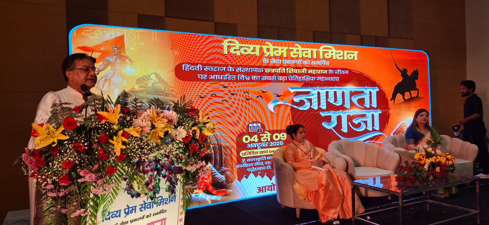 यह महा नाट्य 4 से 9 अक्टूबर 2025 तक रोजाना सायंकालीन सत्रों में मंचित होगा, जहां दर्शक कुंभ जैसी दिव्यता का अनुभव करेंगे। उन्होंने कहा, “12 दिनों की साधना के बाद 4 अक्टूबर से स्वराज्य की गाथा गूंजेगी।” इसके अलावा, आसपास के 20 जिलों में 20,000 से अधिक लोगों तक प्रचार किया गया, जिसमें मातृ शक्ति एवं युवा सम्मेलन और व्याख्यान मालाएं शामिल हैं।