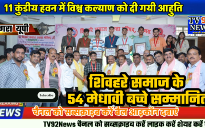 आगरा में शिवहरे समाज के 54 मेधावी बच्चे सम्मानित; डा. सुभाषिनी शिवहरे को ‘सेवा रत्न’ सम्मान