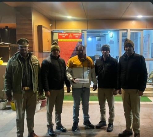दिनांक 01.01.2025 को थाना हरपर्वत पुलिस टीम द्वारा शांति व्यवस्था के दृष्टिगत गश्त/चैकिंग की जा रही थी, पुलिस टीम द्वारा अपराधियों पर सतत निगरानी के दौरान जिला बदर हुए अभियुक्त को अप्पू सिंह उर्फ प्रमोद पुत्र प्रताप सिंह निवासी नाला बुढान सैयद थाना हरीपर्वत आगरा को पालीवाल पार्क के पास से एक अवैध तमंचा व एक कारतूस 315 बोर के साथ गिरफ्तार किया गया है। उपरोक्त बरामदगी के आधार पर थाना हरीपर्वत पर मु0अ0सं0- 01/2025 धारा 3/25 आर्म्स एक्ट, 3/10 गुण्डा नियंत्रण अधिनियम पंजीकृत किया गया।