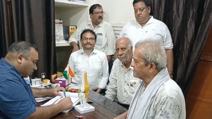 फोटो, कैप्शन− बल्केश्वर में हेरिटेज ग्रीन आगरा क्लब द्वारा लगाए गए हड्डी जांच शिविर में मरीजों को देखते डॉ रीतेश गर्ग। साथ हैं क्लब के सदस्य।