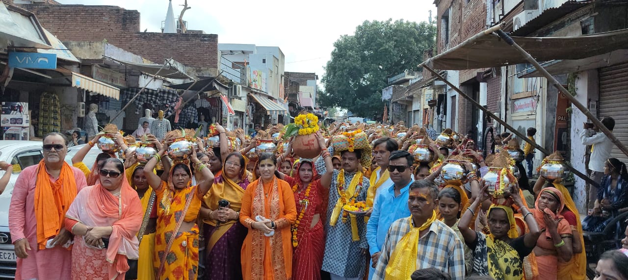 आगरा शहर के प्राचीन श्री खेमेश्वर नाथ महादेव मंदिर में श्री शिवमहापुराण का शुभारंभ श्रद्धा एवं भक्तिभाव से मंगल कलश यात्रा निकालकर किया गया