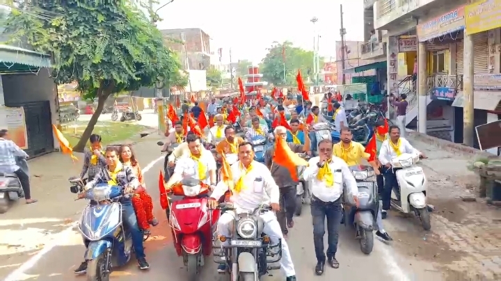 आगरा। महाराजा अग्रसेन और महारानी माधवी के गूंजते जयघोष | क्षेत्रवासियों को बैंड बाजे और भक्तिमय संगीत की धुन पर आमंत्रण देते अग्रवंशी । ये नजारा था कर्मयोगी एक्सटेंशन का मंगलवार को महाराजा अग्रसेन जयंती के लिए आमंत्रण यात्रा का। अग्र मिलन समिति की ओर से आयोजित आमंत्रण यात्रा में समिति के अध्यक्ष पवन बंसल ने बताया कि आमंत्रण यात्रा प्रातः 8 बजे कर्मयोगी फुब्बारा से ब्रज बिहार, कर्मयोगी एन्क्लेव, विमल वाटिका, अमिता बिहार, सरयू धाम वैभव एन्क्लेव, ब्रज धाम होते हुए कर्मयोगी फुब्बारा पर समाप्त हुई। कॉलोनियो में आमंत्रण यात्रा का पुष्प वर्षा कर भव्य स्वागत किया गया।