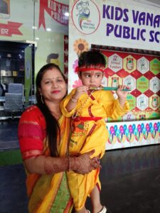 जन्माष्टमी का उत्सव श्री कृष्ण के जन्मदिन के उपलक्ष्य में मनाया जाता है। इस विशेष दिन की महिमा बच्चों को बताने के लिए बच्चों के साथ *किड्स वनस्थली पब्लिक स्कूल* में कृष्ण जन्माष्टमी का उत्सव बड़े ही धूमधाम और अत्यंत हर्षपूर्ण मनाया गया ।उत्सव का प्रारंभ बालकृष्ण स्वरुप को भोग लगाकर और मिग्फ्रे फाउंडर की प्रतिमा के समक्ष दीप प्रज्वलित कर किया गया ।कार्यक्रम में विशिष्ट अतिथि श्री वीरेंद्र कुमार मित्तल (प्रदेश मंत्री) , श्री मनीष कुमार मित्तल (मिग्फ्रे डायरेक्टर), श्रीमती रीना जालान मिग्फ्रे (को चेयरमैन) और डॉक्टर स्वाती चंद्रा ( मिग्फ्रे डायरेक्टर) की भूमिका में उपस्थित रहे