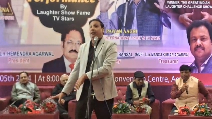 आगरा। व्यंग, कटाक्ष और हास्य की फुहार की लड़ियां बिखरीं लॉयंस क्लब आफ आगरा विशाल के हास्य कवि सम्मेलन में।