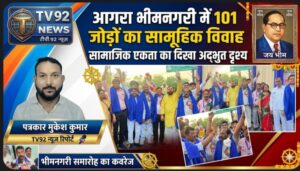 आगरा भीमनगरी में 101 जोड़ों का बौद्ध रीति से सामूहिक विवाह, सामाजिक एकता का दिखा अद्भुत दृश्य Tv92News
