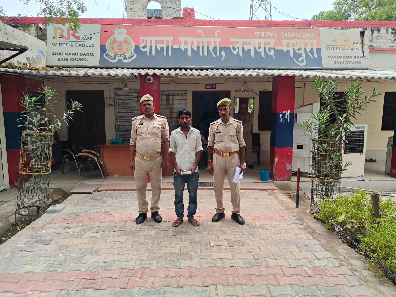 श्रीमान वरिष्ठ पुलिस अधीक्षक महोदय जनपद मथुरा द्वारा अपराध एवं अपराधियो के विरूद्ध चलाये जा रहे अभियान के क्रम में, श्रीमान अपर पुलिस अधीक्षक महोदय (ग्रामीण) व श्रीमान क्षेत्राधिकारी महोदय गोवर्धन के पर्यवेक्षण एवं प्रभारी निरीक्षक मगोर्रा के कुशल नेतृत्व में थाना मगोर्रा पुलिस टीम द्वारा एक अभियुक्त राकेश पुत्र ओमप्रकाश निवासी नगला खेरा सौंख थाना मगोर्रा जनपद मथुरा को अवैध कारतूस के साथ दिनांक 14.06.2025 समय 22.35 बजे, थाना हाजा क्षेत्रान्तर्गत सौंख नाले की पुलिया से गिरफ्तार किया गया । जामा तलाशी के दौरान अभियुक्त के कब्जे से 04 अदद जिन्दा कारतूस 315 बोर बरामद किये गये । गिरफ्तारशुदा अभियुक्त के विरूद्ध आवश्यक विधिक कार्यवाही की जा रही है ।