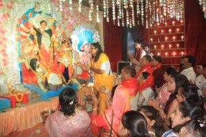 संध्या पूजन में गुलाबी परिधान धारण कर महिलाओं ने माता की धुनि आरती की। इसके बाद महाआरती में मुख्य अतिथि महंत निर्मल गिरी, कमल सिंह वाल्मिकी, संरक्षक रजनी अग्रवाल, पार्षद शरद चौहान, सुनील जैन, पप्पू कुशवाह, मनीष कुशवाह, आकाश कुशवाह, विष्णु, दिनेश, अरुण पाठक, अभिषेक चौधरी आदि उपस्थित रहे। संरक्षक रजनी अग्रवाल ने बताया नवरात्र उत्सव के तीसरे दिन शनिवार को देवी जागरण होगा।