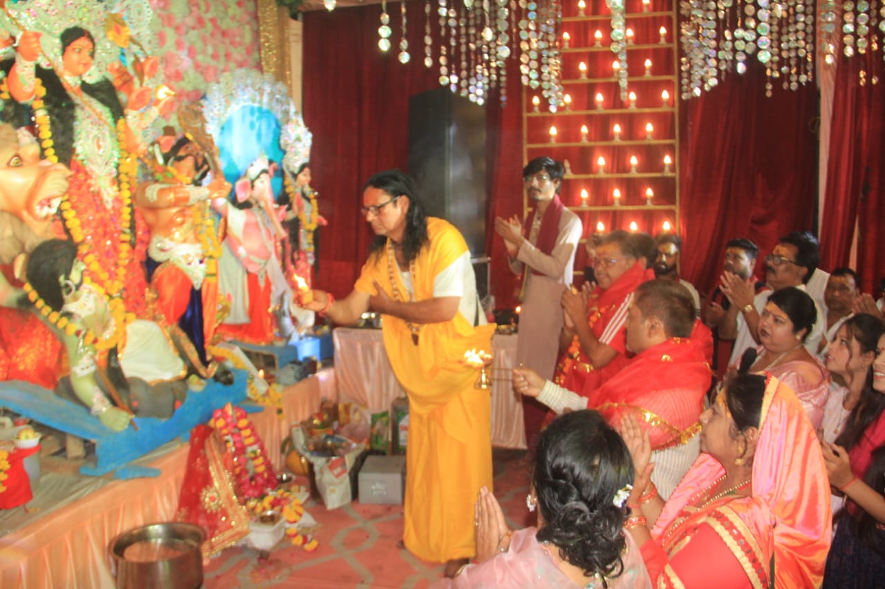 संध्या पूजन में गुलाबी परिधान धारण कर महिलाओं ने माता की धुनि आरती की। इसके बाद महाआरती में मुख्य अतिथि महंत निर्मल गिरी, कमल सिंह वाल्मिकी, संरक्षक रजनी अग्रवाल, पार्षद शरद चौहान, सुनील जैन, पप्पू कुशवाह, मनीष कुशवाह, आकाश कुशवाह, विष्णु, दिनेश, अरुण पाठक, अभिषेक चौधरी आदि उपस्थित रहे। संरक्षक रजनी अग्रवाल ने बताया नवरात्र उत्सव के तीसरे दिन शनिवार को देवी जागरण होगा।