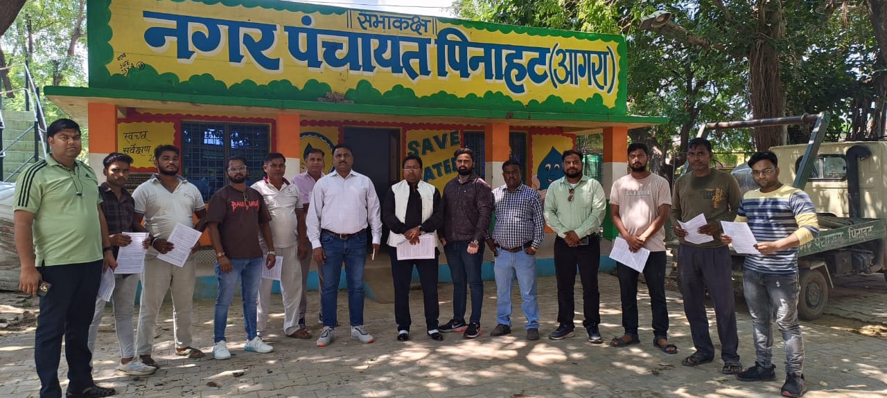 आज आज़ आगरा उत्तर प्रदेश स्थानीय निकाय कर्मचारी महासंघ के महानगर अध्यक्ष अध्यक्ष अनिल राजौरिया के नेतृत्व में आगरा जनपद की नगर पंचायत पिनाहट का दौरा किया गया, जहां कर्मचारियों की लम्बित समस्याओं एवं स्थानीय समस्याओं पर व्यापक विचार-विमर्श किया गया,तो वहां जाकर पता चला कि एक आऊटसोर्सिंग सफाई कर्मचारी ही पूरी नगर पंचायत का कार्यालय चला रहें उनके साथ नलकूप का बस एक स्थाई कर्मचारी साथ दें रहें हैं और वहां चार लिपिकों के स्वीकृत पद हैं परन्तु सभी काफी साल पहले सेवा निवृत्त हो गये हैं