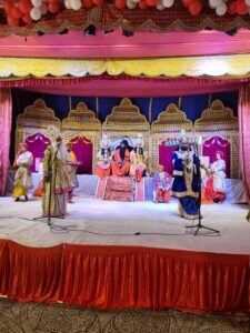 फोटो, कैप्शन− गढ़ी ईश्वरा, दिगनेर, शमशाबाद रोड स्थित श्री मनः कामेश्वर बाल विद्यालय में आयोजित बाबा मनःकामेश्वर नाथ राम लीला महोत्सव में लीला मंचन करते कलाकार।