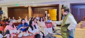 फोटो, कैप्शन− होटल होली डे इन में स्पाइसी शुगर संस्था द्वारा आयोजित डिजिटल सेफ्टी कार्यशाला को संबोधित करते साइबर एक्सपर्ट रक्षित टंडन।