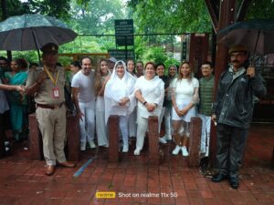 आगरा में हो रही झमाझम बरसात के बीच विदेशी पर्यटकों का ताजमहल पर आना लगातार जारी है आज स्पेन देश के लगभग 30 पर्यटकों ने ताजमहल देखने हेतु ताज महल के पश्चिमी गेट पर आगमन किया जहां ताज सुरक्षा पुलिस की क्विक रिस्पांस टीम के द्वारा उनका स्वागत करते हुए उन्हें हर संभव सहायता कर सभी जानकारियां देकर और टिकट दिलाने में सहयोग कर ताजमहल में प्रवेश कराया गया ।सभी पर्यटक ताज सुरक्षा पुलिस की सहायता से प्रसन्न नजर आए।
