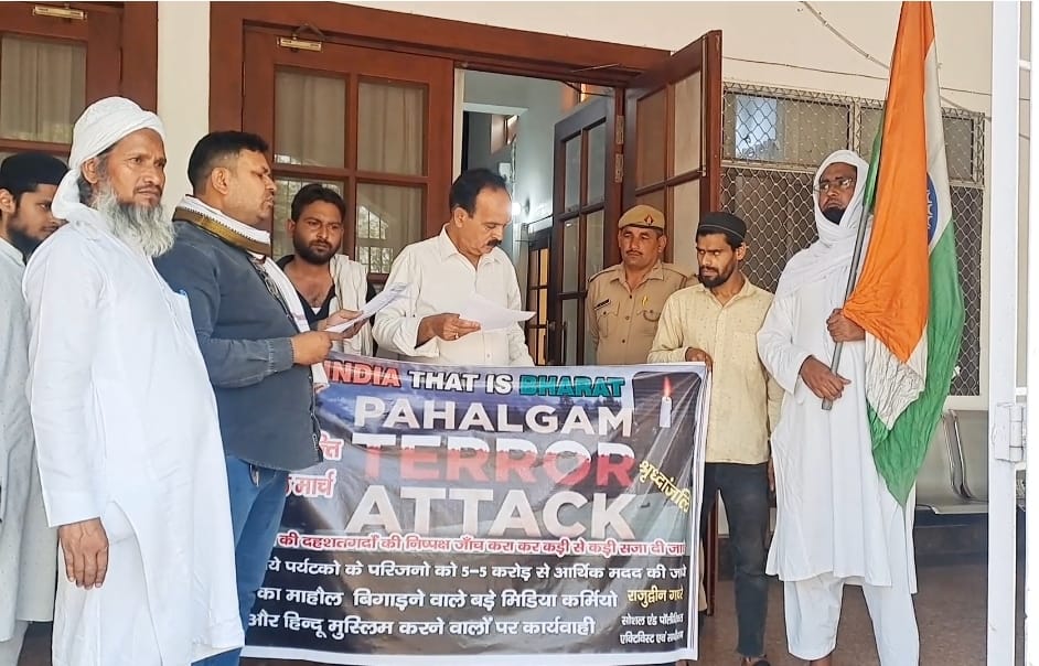 मेरठ:-पहलगाम कश्मीर में निर्दोष मारे गए पर्यटको के परिजनों को पांच पांच करोड रुपए एवं घायल को एक करोड रुपए की आर्थिक मदद की जाए और दहशतगर्दो को फांसी दो हिंदू राष्ट्र मांग करने वालों पर सख्त से सख्त तुरंत कार्रवाई की जाए।