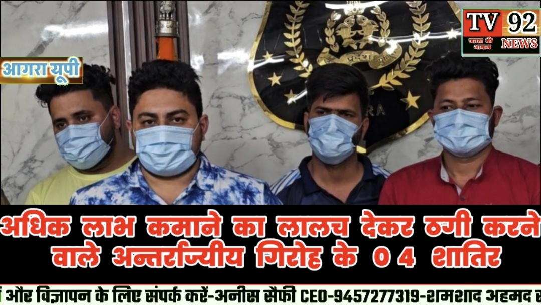 पुलिस आयुक्त, कमिश्नरेट आगरा के साइबर क्राइम अपराधियों के विरुद्ध की जा रही प्रभावी कार्यावाही में श्रीमान अपर पुलिस आयुक्त, कमिश्नरेट आगरा व श्रीमान पुलिस उपायुक्त नगर जोन के निर्देशन में एवं सहायक पुलिस आयुक्त साइबर क्राइम, कमिश्नरेट आगरा के कुशल पर्यवेक्षण में थाना साइबर क्राइम, कमिश्नरेट आगरा द्वारा अवैध CRYPTO CURRENCY INVESTMENT के जरिये USDT में अधिक लाभ कमाने का प्रलोभन देकर WhatsApp व Social Media के प्लेटफार्म व फर्जी बेवसाइट पर वर्चुल अकाउंट बनाकर, विभिन्न खातों में रु0-42,50,000/- की धोखाधड़ी करके पैसे को ट्रासफर कराने वाले 04 अभियुक्त जो दिल्ली, नोएडा व मुजफ्फरनगर के निवासी हैं को गिरफ्तार किया गया है।