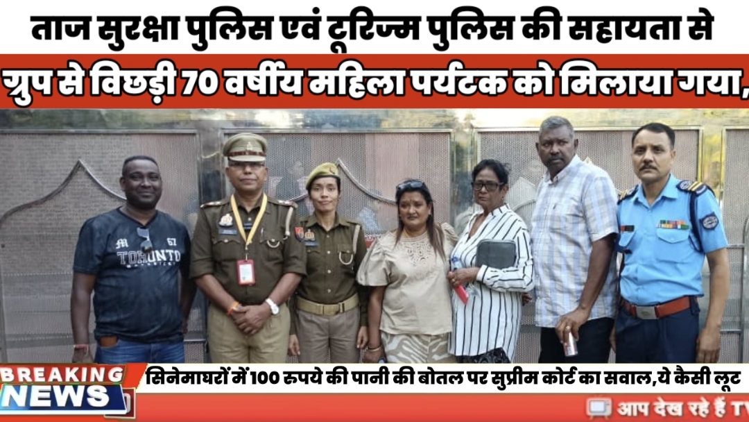 ताज सुरक्षा पुलिस एवं टूरिज्म पुलिस की सहायता से ग्रुप से विछड़ी 70 वर्षीय महिला पर्यटक को मिलाया गया, Tv92News