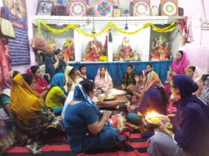 देश में सुख शांति समृद्धि घरों में खुशहाली रहे सभी के भंडार भरें रहे की अरदास के साथ तरह-तरह के मीठे पकवान बनाए माता को भोग लगाकर प्रसाद सभी में वितरण किया है