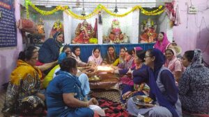 झूलेलाल मंदिर पर महिलाओं ने सिंधी (सगडा पर्व)पर सामूहिक पूजा कर मन्नत के डोरे खोलें